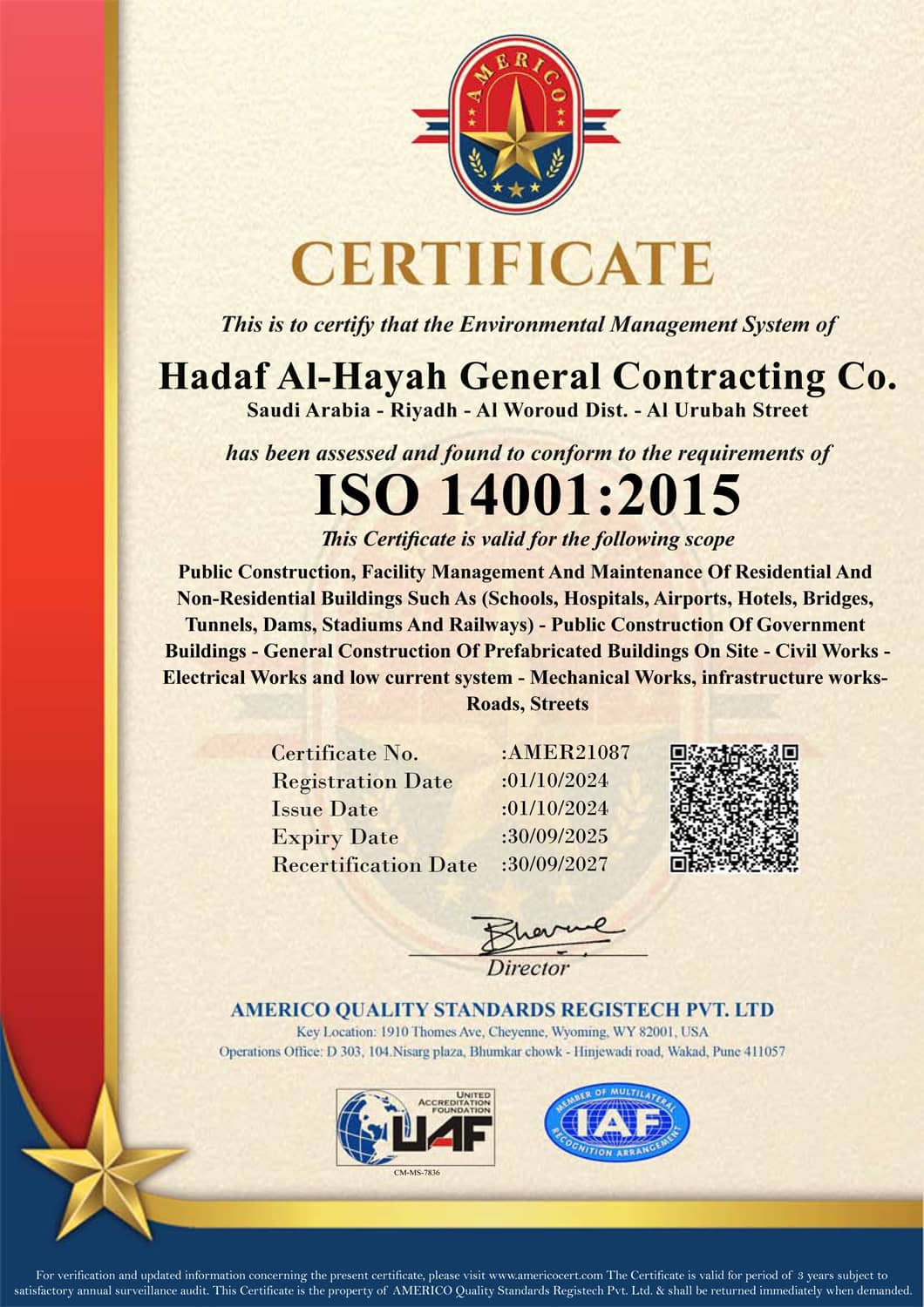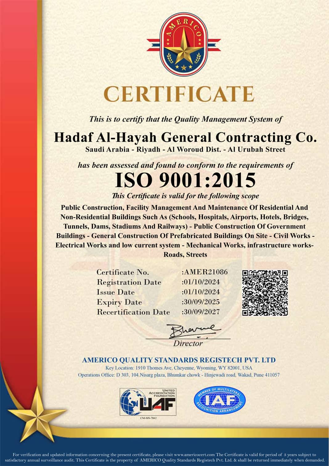 Hadaf will continue to achieve service excellence for our customers by applying our technical expertise our skills, our quality standards,continuous development of our employees and optimal utilization of our supply chain working closely with our customers, suppliers and partners.